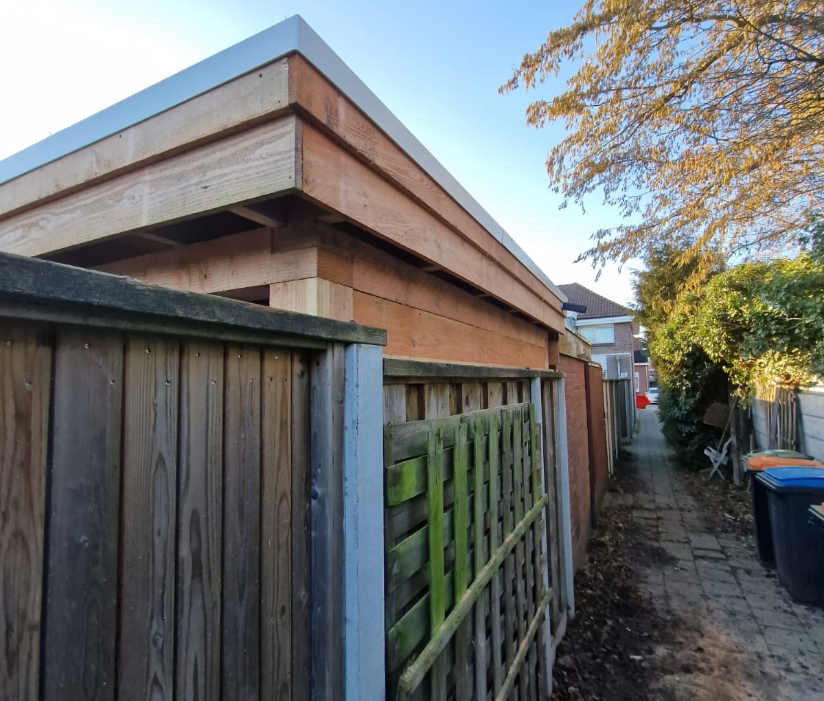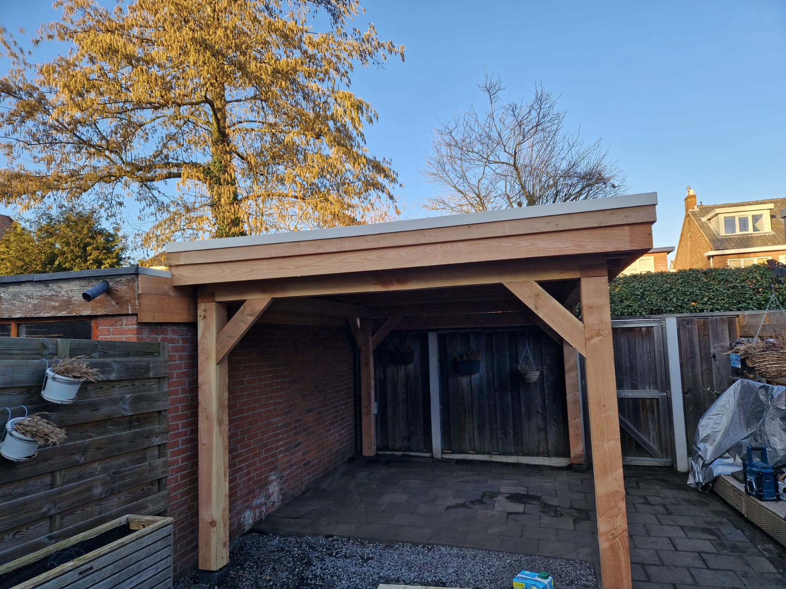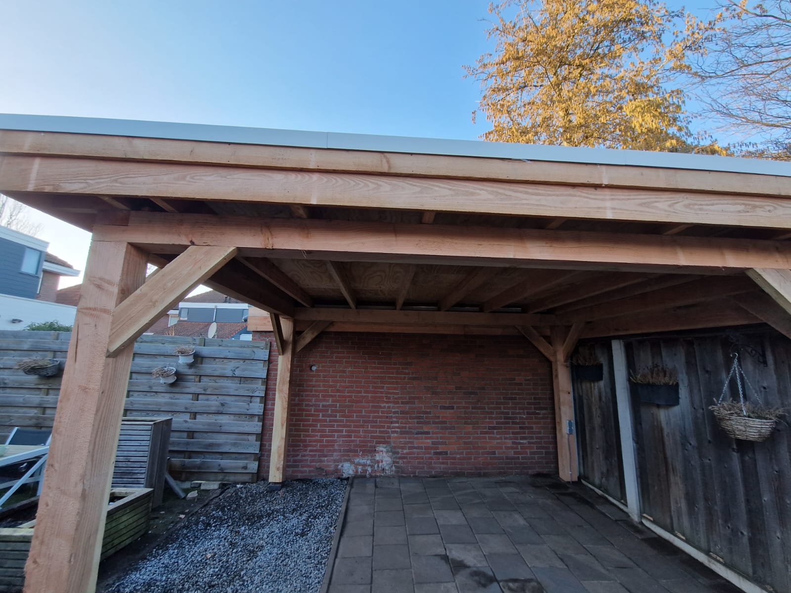 Wij zijn verheugd om aan te kondigen dat wij onlangs een prachtige overkapping op maat hebben gemaakt voor één van onze klanten. Ons ervaren team van vakmensen heeft gezorgd voor een perfecte afstemming op de wensen en behoeften van de klant, waardoor de overkapping volledig voldoet aan de gewenste specificaties. Hierbij hebben wij gebruik gemaakt van hoogwaardige materialen en vakmanschap, waardoor de klant verzekerd is van een duurzame oplossing die nog vele jaren meegaat. De overkapping is op maat gemaakt en volledig afgestemd op de stijl van de woning van de klant, waardoor deze een prachtige toevoeging is geworden aan de buitenruimte. Wij zijn er trots op dat wij hebben bijgedragen aan het creëren van een mooie en functionele buitenruimte voor onze klant en kijken er naar uit om nog meer klanten te helpen bij het realiseren van hun droomprojecten.
